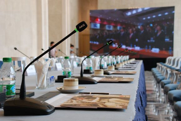 在擴(kuò)聲系統(tǒng)方面,VIP會議室則安裝了JBL Intellivox 數(shù)控指向性有源音柱DC115!坝捎跁h場地的空間較為狹窄,而且以大理石為主,導(dǎo)致很多回聲。JBL Intellivox系列音柱能提供一個非常狹窄的垂直覆蓋角度及寬廣的水平覆蓋角度,因此SPL均勻覆蓋,聲音數(shù)字化瞄準(zhǔn)聽眾并提供更少的聲音反射,配合AKG會議無線話筒,確保了語音清晰度高,聲音自然,有效地解決了場地因素的這一問題! 深圳鴻哲的技術(shù)工程師袁晨光如此說。