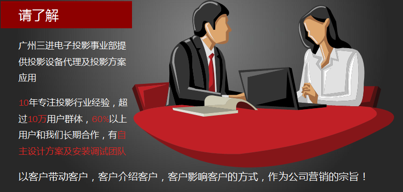 投影機有幾項目重要的指標參數(shù),像分辨率、亮度、對比度、燈泡壽命等,是廠商及用戶關(guān)注的技術(shù)含量。廣州三進電子有專業(yè)的演示體驗中心,作為一家投影設(shè)備供應(yīng)商,公司擁有售前體驗、售中咨詢、售后服務(wù)三項基本,并提供整套的多媒體設(shè)備、會議影音設(shè)備等解決方案。包括投影機、電子白板、投影銀幕、展示臺、音響設(shè)備、講臺等,可一站式完成,讓用戶能更簡單、方便、放心的體驗及購買。
