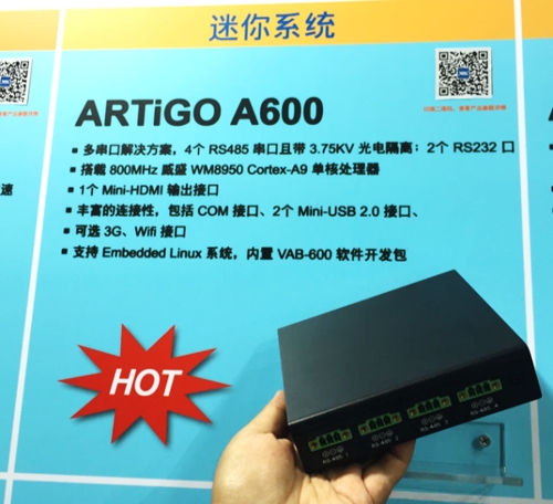 威盛ARTiGO A600因體積極小,但串口多達(dá)6個(其中4個RS485串口且?guī)?.75KV光電隔離;2個RS232口),且除通常有線連接外,可選3G、Wifi連接,成為眾多客人問詢的熱點(diǎn)。
