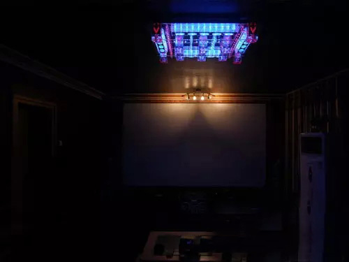 網(wǎng)上買的,全遙控,多種燈光變幻,價(jià)格雖然不到600,但安裝著實(shí)麻煩。請(qǐng)來兩個(gè)專業(yè)師傅弄了一個(gè)下午。燈光氛圍可以為影院營造愉悅的氣氛。不是嗎?