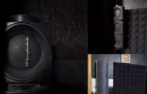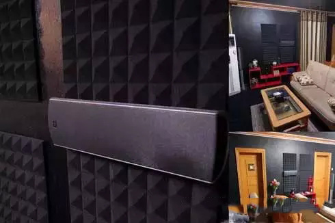 對(duì)于吸音,還用了十塊金字塔形吸音海綿,貼在第一反射點(diǎn)與后環(huán)繞處,價(jià)格便宜(一塊38元),施工簡單。