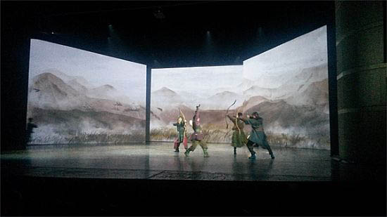 其中,雁丘詞亮點之一就是首次在舞劇舞臺上大規(guī)模使用投影技術(shù),摒棄繁雜的實景搭建,絕大多數(shù)舞臺布景效果變換通過三塊巨幕投影實現(xiàn)。中部屏幕高8米長12米,兩側(cè)兩塊各高6米長8米,創(chuàng)同類舞劇舞臺投影之最。從繁華都市到潑墨山水,從氣象萬千到四季輪回,從風到雪,從天地到人間,均在這三方巨幕上呈現(xiàn)。如此化繁為簡的神奇妙筆,為《雁丘詞》開啟了一扇門,觀眾可以穿越千年,共賞詩情畫意,感悟永恒之愛。