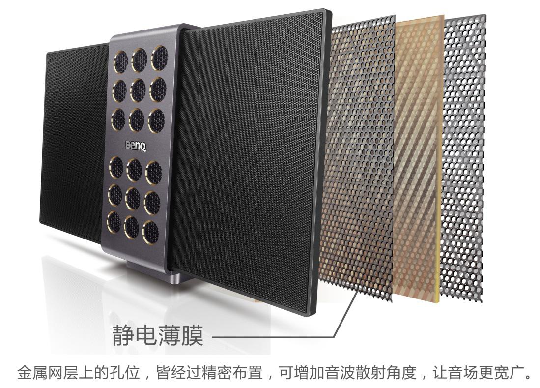 BenQ treVolo的兩翼可折疊式設(shè)計(jì)打破傳統(tǒng)箱體式的呆板作風(fēng),讓聲音在不受箱體共振的影響下完全釋放聲音本色。正面是蜂巢式的金屬面板,而靜電薄膜揚(yáng)聲器則像翅膀一樣,可以收起和展開(kāi),以此來(lái)實(shí)現(xiàn)便攜性。