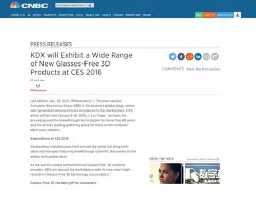 據(jù)傳康得新將在展會(huì)期間面向全球舉行裸眼3D技術(shù)的研討會(huì)活動(dòng),聯(lián)合來自全球的一線品牌廠商,共話裸眼3D未來,攜手引領(lǐng)全球視覺革命,共同為創(chuàng)造人類美好生活而增智添力。這也成為了媒體紛紛關(guān)注的一大因素,美國本土已有超過250家媒體進(jìn)行傳播和轉(zhuǎn)載,關(guān)注康得新在科技行業(yè)的盛事與創(chuàng)新亮點(diǎn)。