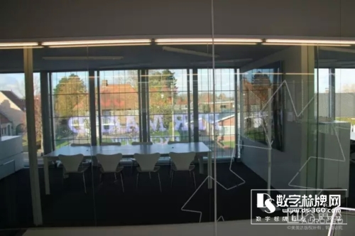 屏幕安裝在會(huì)議室的落地玻璃窗上,主要用于白天和晚上對(duì)外播放廣告視頻,白天完全不影響光線投入室內(nèi),窗外陽(yáng)光明媚,美景盡收眼底。