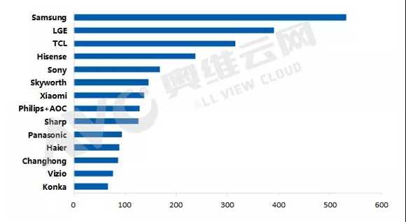Samsung 7-8月共出貨531萬臺,同比下降12.8%。在整體電視市場需求飽和眾多競爭者的壓力下,三星勢必得改變產(chǎn)品策略,轉(zhuǎn)至中高端盈利性產(chǎn)品。在產(chǎn)品結(jié)構(gòu)方面,三星50寸及以上出貨占比比去年同期增長10.5%。由于三星在保盈利性,奧維云網(wǎng)預計,2018年三星全球電視出貨仍有4%左右的衰退,出貨量在4000萬臺水準。