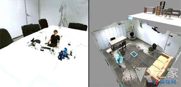 微軟 開始探索將VR和AR的優(yōu)勢結合起來,在混合現實中創(chuàng)造性地操縱空間與時間。他們創(chuàng)建了一個混合現實環(huán)境,其中用戶可以看到周遭環(huán)境的實時表示。與其他方法相比,用戶不是通過機載攝像頭看到圖像。相反,微軟為房間配備了八個安裝在天花板上的Kinect攝像頭。攝像頭的數據將組合成一個完整的3D房間重建視圖。用戶可以通過VR頭顯看到重建的環(huán)境實時視圖。