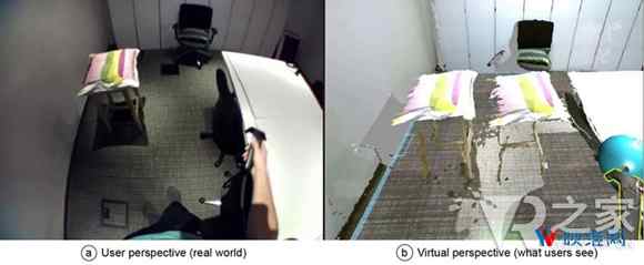 微軟團隊將用戶的虛擬視點與他們在房間中的實際位置相匹配。這意味著物理對象能夠對齊虛擬表示。由于數據是實時傳輸,因此用戶能夠實時感知到物理環(huán)境中的任何變化(如家具的移動或進入房間的人)。用戶仍然可以觸摸和感受到現實世界,并同時獲得執(zhí)行幾乎所有視覺變化的能力。