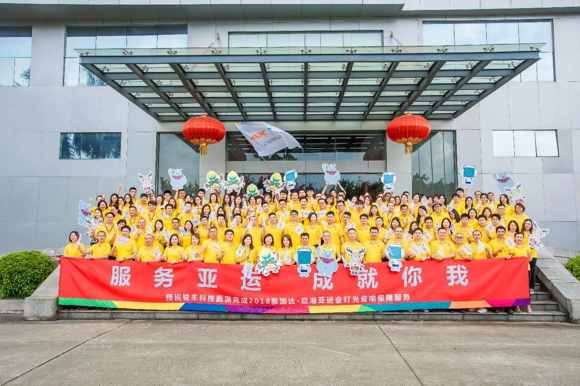 7月18日下午兩點半,現(xiàn)場亞運會項目組工作人員在銳豐公司拍攝合照后,動員大會正式開始。