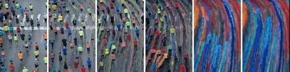 △2017年芝加哥的馬拉松比賽視頻慢慢融化成“油畫線條”又逐漸清晰。