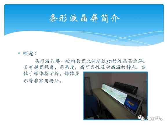 液晶條形屏用其得天獨厚的優(yōu)勢,已經(jīng)逐步取代了傳統(tǒng)的廣告牌、燈箱等,成為廣告?zhèn)髅綐I(yè)的一支新力量。