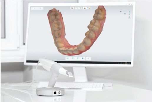 3D掃描技術(shù)在醫(yī)療行業(yè)中的應(yīng)用飛速增長(zhǎng)。例如,牙科中采用口腔內(nèi)掃描儀(IOS)直接采集光學(xué)印模(圖4)。在制作假體修復(fù)體時(shí),如鑲嵌物、高嵌體、頂蓋和牙冠,需要達(dá)到微米級(jí)3D圖像精度。IOS簡(jiǎn)化了牙醫(yī)的臨床操作程序,省卻了對(duì)石膏模型的需求并減輕了患者的不適。