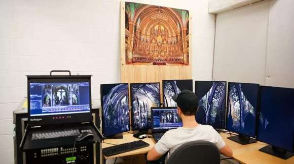 在蒙特利爾建城375周年的紀(jì)念日,這座城市的標(biāo)志建筑圣母大教堂舉辦了一場名為“AURA(頭上光環(huán))”的聲光秀,大膽地使用燈光投影來凸顯圣母大教堂的華美和壯麗。