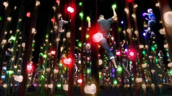 “體育森林(athletics forest)”是teamlab的另一個(gè)靈感,即把創(chuàng)意和肢體行為融為一體,既能促進(jìn)大腦發(fā)育,也能訓(xùn)練人們的空間意識(shí)。游客們能夠在發(fā)光的寶石組成的攀巖裝置上體驗(yàn)3D燈光,還有一個(gè)像“boing boing universe”一樣的地方供人們跳躍,一個(gè)擁有不同高度、不同斜坡的巨大3D“山脈”。游客們參與進(jìn)來(lái),完全沉浸在交互式的數(shù)字藝術(shù)作品中,將會(huì)給他們帶來(lái)一次印象深刻的創(chuàng)意體驗(yàn)。