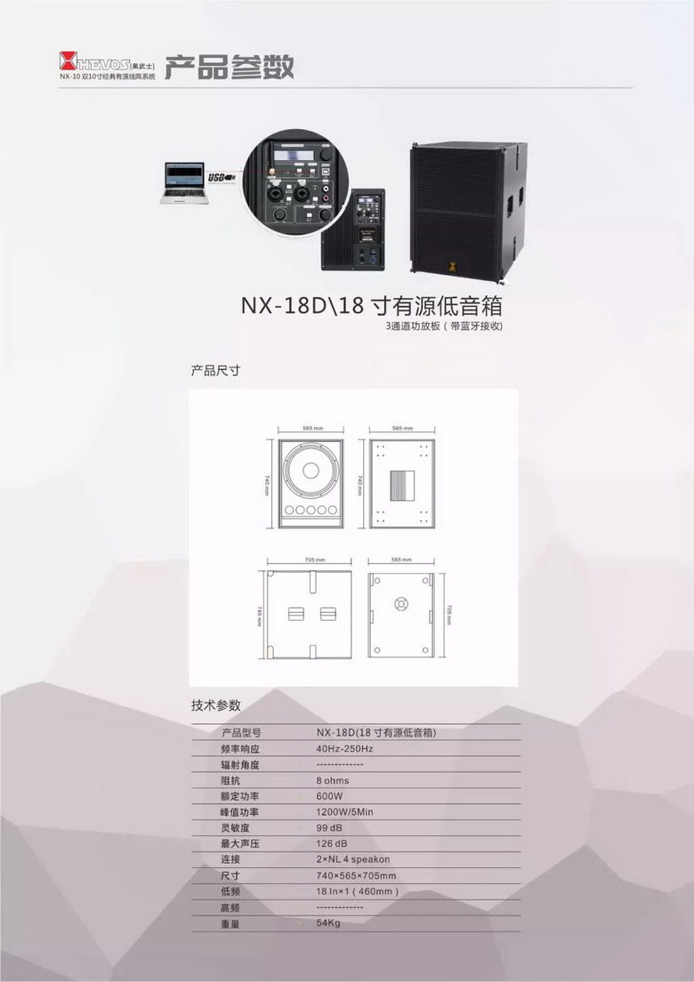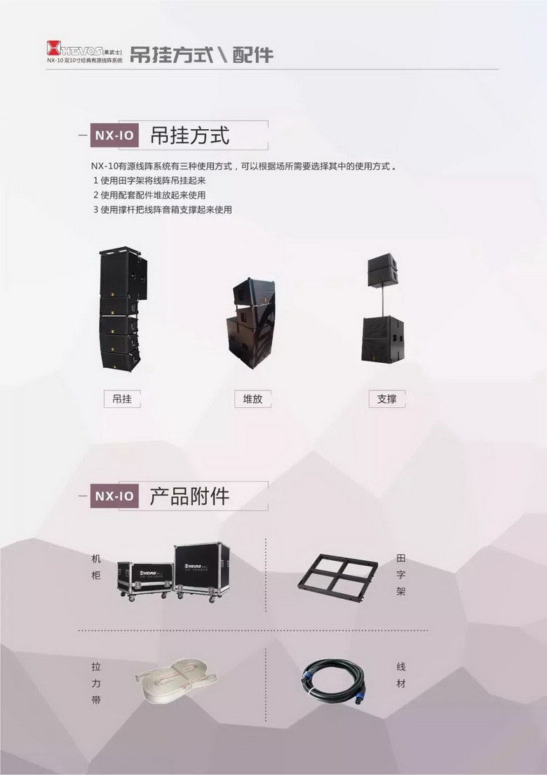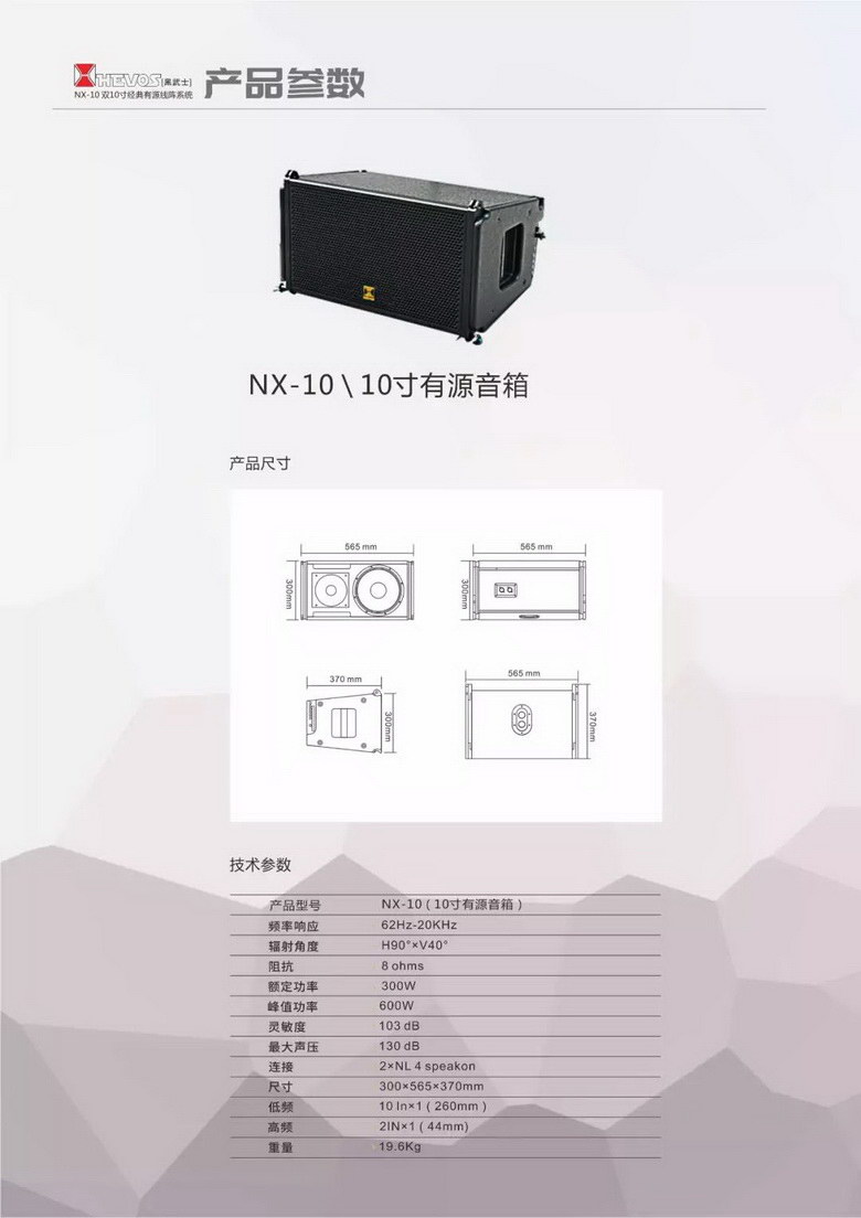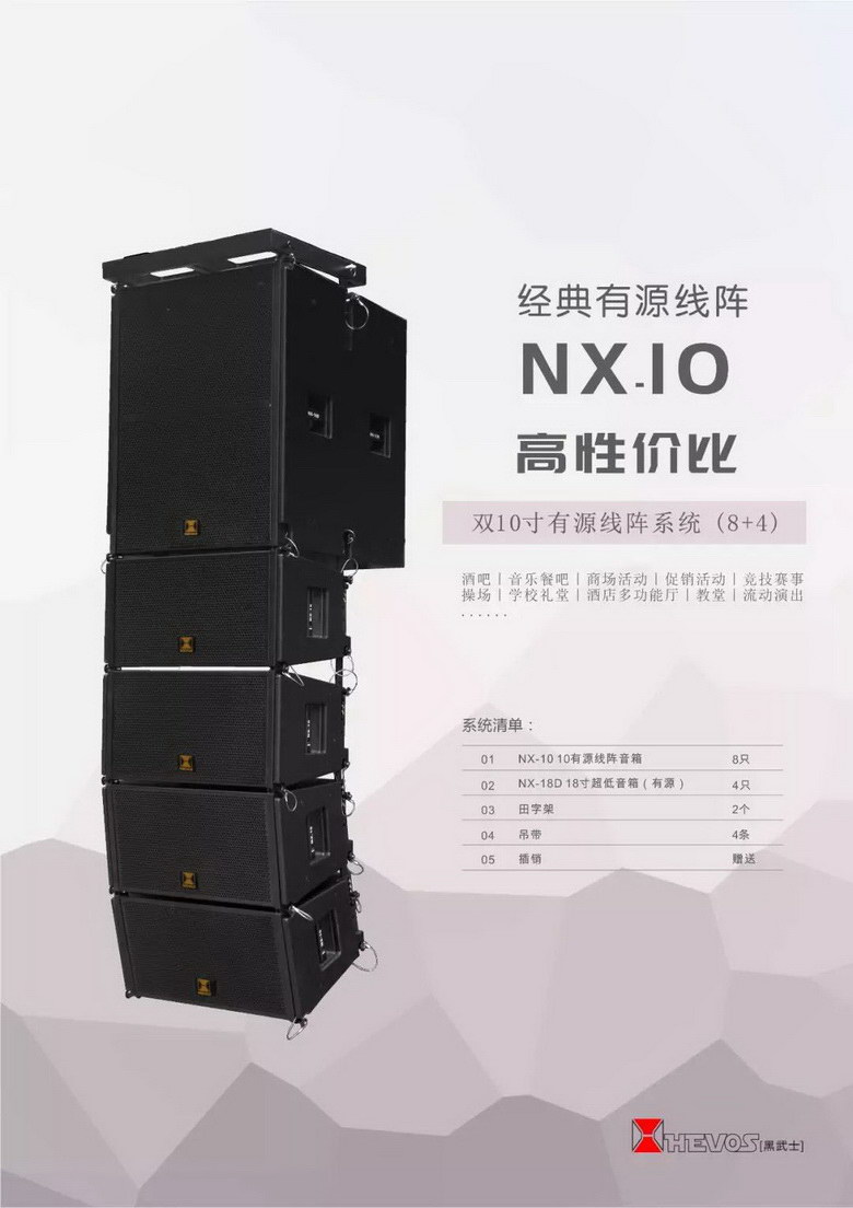 NX系列有源音箱是一款多用途小型線陣音箱系統(tǒng)。采用10寸低音單元和2寸高音單元,輸出功率強;系統(tǒng)音色出眾,表現(xiàn)力出色,效率高且工作穩(wěn)定,還有極高的性價。