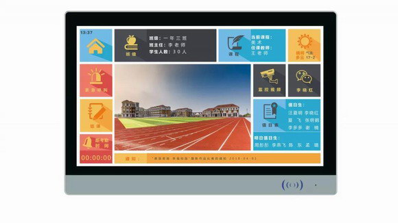 配備電子班牌,可進(jìn)行智能簽到、智能控制、信息互動(dòng)等信息化元素,通過電子班牌這一智能物聯(lián)網(wǎng)信息終端,實(shí)現(xiàn)教室設(shè)備的統(tǒng)一管理。