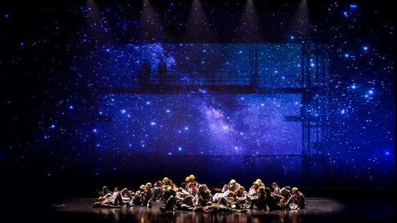 舞美設(shè)計上,團(tuán)隊大膽創(chuàng)新地運(yùn)用最新的智能化舞臺系統(tǒng),將大橋、人工島、深海沉管等場景完美呈現(xiàn)在觀眾眼前。