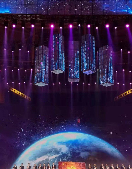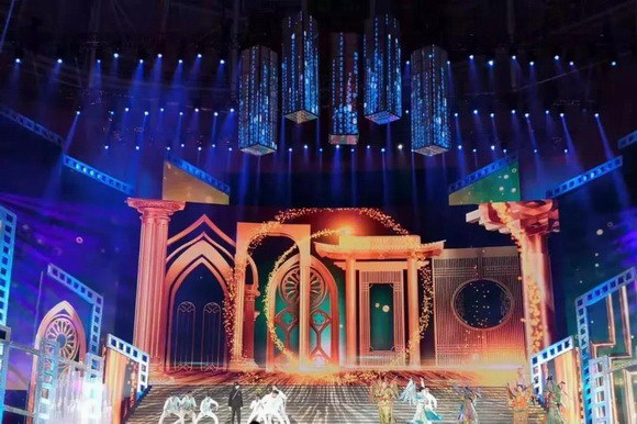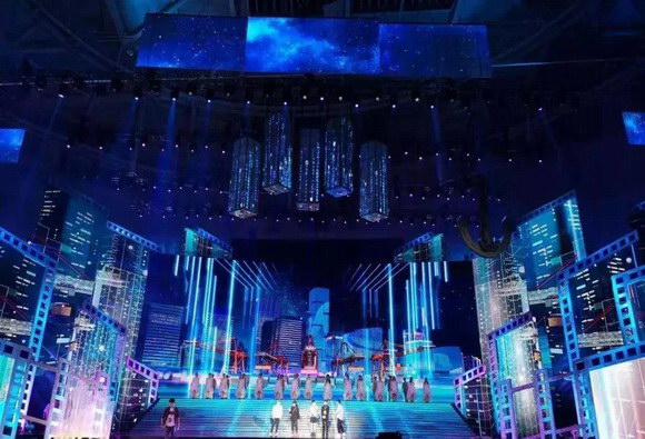 說到閉幕式晚會,不得不提今年獨具匠心的舞臺。此次舞臺以簡約大氣為主,沒有太多機械,而是通過數(shù)控升降冰屏影像、上百組燈光以及主屏幕動態(tài)特效營造奇幻的空間,并根據(jù)獨唱、合唱以及其他的表演形式來變換顏色、元素。