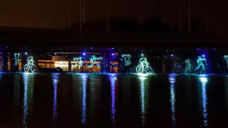 淮安里運河文化長廊上演水幕投影秀