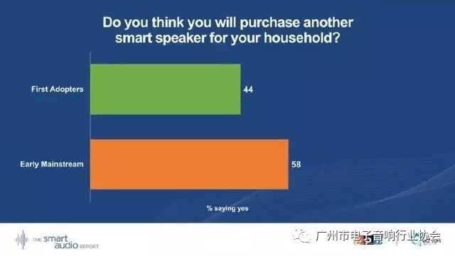 有58%早期的主流消費者表示還想要在家中購買另一個智能音箱,這一群體的購買欲望要大于第一批使用者的44%。