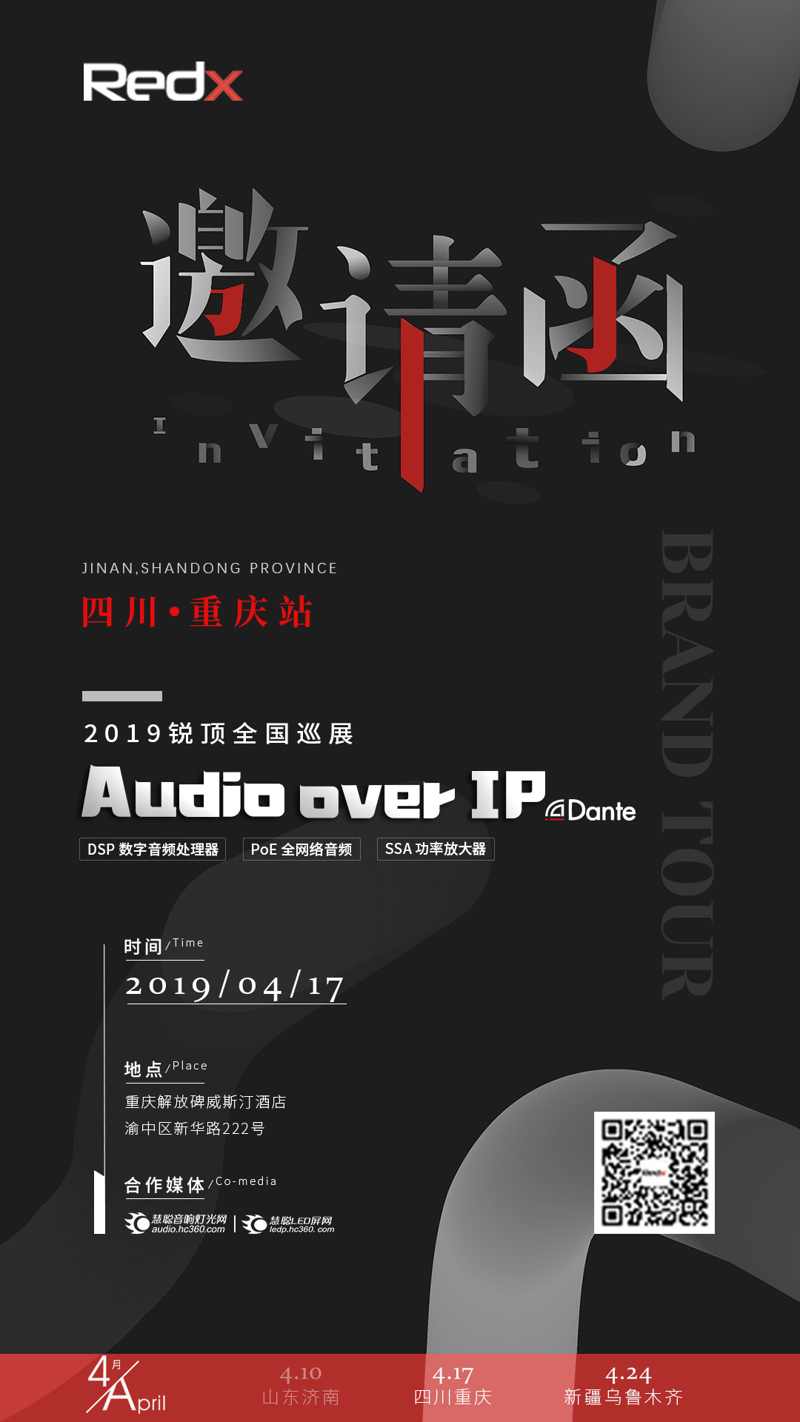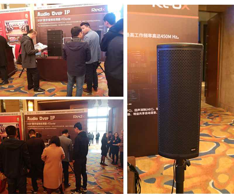 在這美好的4月,“Audio over IP——2019 Redx全國(guó)巡展“10日在山東濟(jì)南喜來(lái)登酒店開(kāi)啟。Redx秉承“Audio over IP “理念,致力于為用戶提供全網(wǎng)絡(luò)化音頻解決方案。展出的產(chǎn)品均采用了Dante音頻傳輸協(xié)議,包括:Dante話筒、數(shù)字音頻處理器、PoE音箱以及PoE線陣列等,此外我們的系統(tǒng)從音頻輸入、處理到音箱還原也都采用網(wǎng)線連接。
