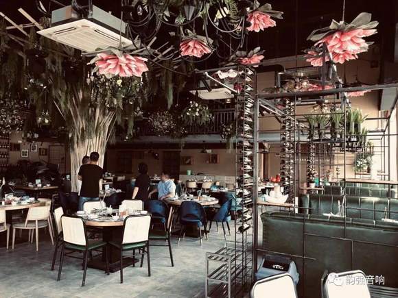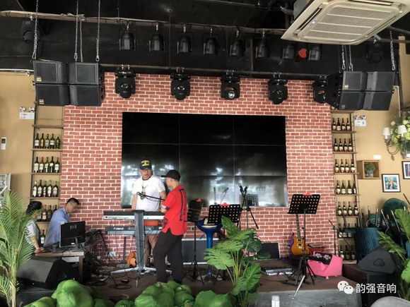 此次餐吧使用的是韻強音響2019年新款2分頻3單元雙八英寸防水全頻線陣列揚聲器系統(tǒng):LA208/LA208A