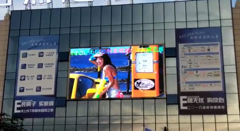 1、陜西某地家具購(gòu)物廣場(chǎng)戶外LED顯示屏,采用同異步雙?刂品桨。
