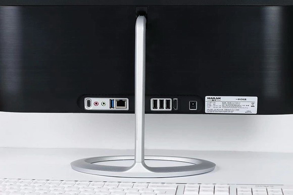 而如此驚艷的觀感可不止是海蘭Q40的正面,無論從側(cè)面還是背面看都同樣令人驚訝,設(shè)計(jì)師怎么能將一體機(jī)做得如此簡(jiǎn)約精致呢?甚至從背面看也未必能一眼就看出是一體機(jī),而整機(jī)在黑色面板為主的設(shè)計(jì)下,還獨(dú)特的配以一個(gè)專利設(shè)計(jì)的銀色底座。無論從任何角度來看這個(gè)底座,都令人有點(diǎn)難以置信,如此極簡(jiǎn)的線條,居然能支撐起一個(gè)屏幕,而且是一體機(jī)的屏幕,后面還有主機(jī)配件哦。