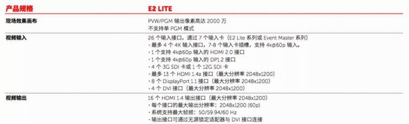 對于大多數(shù)演出來說,并非所有的畫面呈現(xiàn)都需要4K支持,但卻都需要集成與使用的靈活性。E2 Lite的推出,是對Event Master系列靈活性的強有力補充:E2 Lite支持與Event Master系列所有控臺搭配使用;同時可實現(xiàn)與另外一臺E2 Lite連接共同使用;Event Master板卡也可應(yīng)用在E2 Lite產(chǎn)品上,減少了客戶的重復(fù)投入,提高了投資回報率。