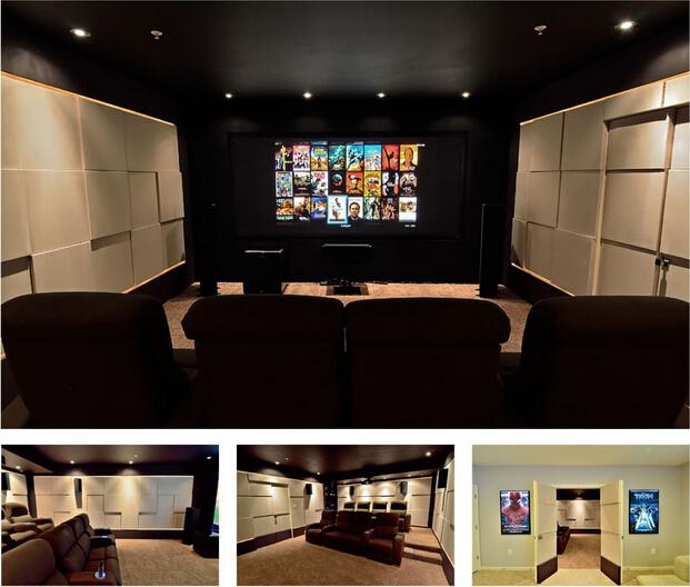 左 視聽室的大門、內(nèi)飾、燈光照明都進(jìn)行了大范圍的更新,針對(duì)房間的聲學(xué)特性,屋主專門訂做了一批聲學(xué)材料