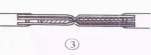 接著把這兩股芯線按順時(shí)針方向緊纏2圈后,再折回90° 并平臥在折起前的軸線位置上。
