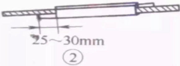 將兩根線頭相對(duì)插入并穿出壓接管,使兩線端各自伸出壓接管25~30mm。