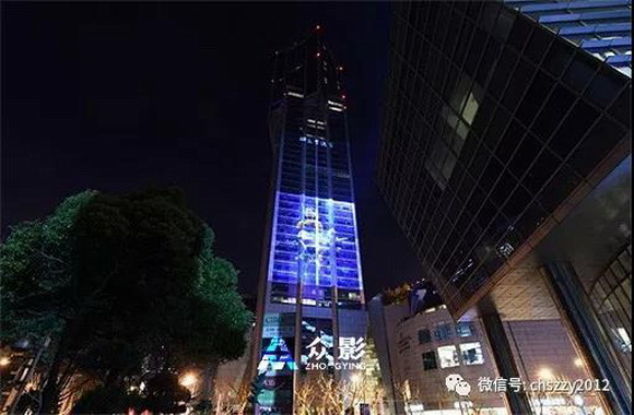 由于上海仙樂斯廣場(chǎng)的墻面玻璃是金黃色的,普通的投影方法無法滿足亮度要求。因此,工作人員對(duì)墻壁施加了膜處理,其長度為37米,高38.9米,以確保光路的正常折射并實(shí)現(xiàn)更好的成像效果。