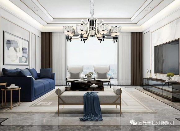 客廳是融合了社交和生活的開放功能區(qū)間,有會(huì)客、休閑、家庭觀影等不同場景,單一的吊燈或吸頂燈難以滿足氛圍需求。