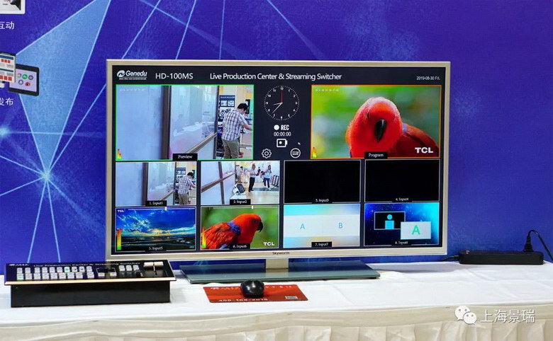新媒體數(shù)字導(dǎo)播臺(tái),內(nèi)含攝像機(jī)控制鍵盤(pán),在節(jié)目制作過(guò)程中可方便的控制鏡頭和靈活切換。設(shè)備具有友好的操作界面,所有操作所見(jiàn)即所得。設(shè)備也支持遠(yuǎn)程課堂,輕松實(shí)現(xiàn)音視頻實(shí)時(shí)互動(dòng)。