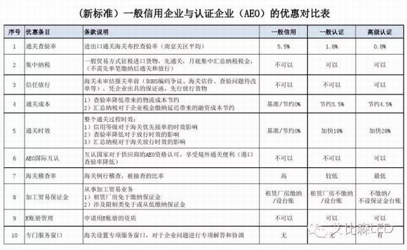 AEO是Authorized Economic Operator的簡稱,即“經認證經營者”,AEO制度是世界海關組織為了實現(xiàn)全球貿易安全與便利目標而引入的一項制度,海關對企業(yè)的守法規(guī)范標準、內部控制標準、財務狀況標準和貿易安全標準等方面進行嚴格的審核認證,從而給予其本國和互認國海關的進出口貨物通關便利和優(yōu)惠措施的制度。