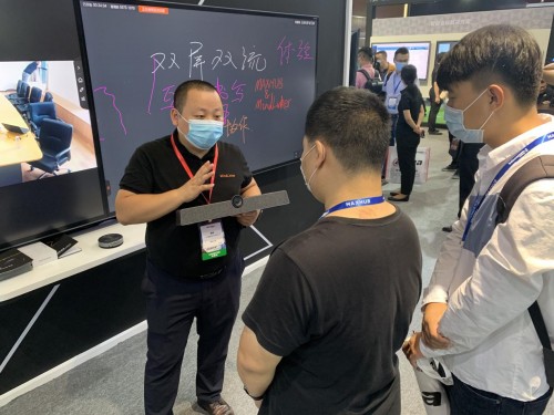 本次展會(huì)上,邁聆會(huì)議呈現(xiàn)1080P雙屏雙流遠(yuǎn)程視頻,現(xiàn)場(chǎng)連接遠(yuǎn)在千里外的廣州辦公室,讓現(xiàn)場(chǎng)參展嘉賓非常驚艷,可以看到,一屏畫面、一屏共享的視覺體驗(yàn),讓現(xiàn)場(chǎng)感受到高清、細(xì)膩、開闊的遠(yuǎn)程會(huì)議!