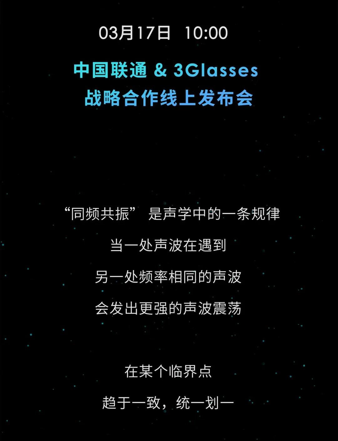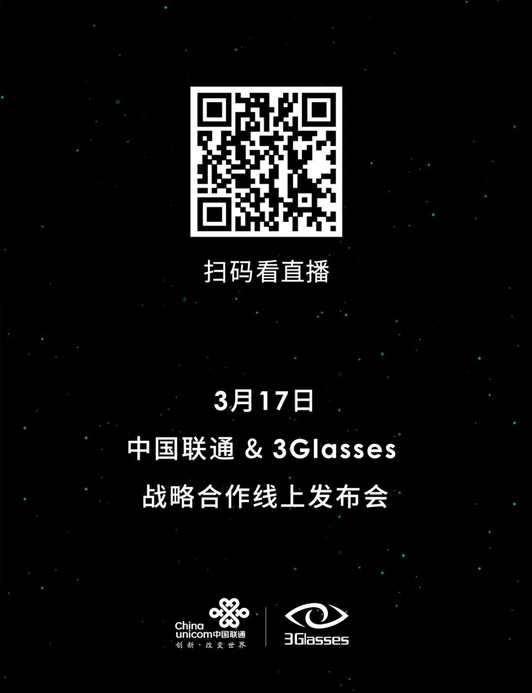 3月17日 10:00中國聯(lián)通 & 3Glasses戰(zhàn)略合作線上發(fā)布會(huì)盡請(qǐng)期待