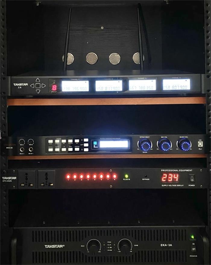 得勝(廣州)工程團(tuán)隊(duì)在實(shí)地考察過后,考慮到連平縣廣播電視臺(tái)的會(huì)議場地及對(duì)會(huì)議設(shè)備的音效需求,配備了無需鋪線,支持四支麥克風(fēng)同時(shí)使用并可有效避開工業(yè)頻率干擾的X4(TH)四通道無線麥克風(fēng),以及利于吊掛安裝,抗震性能良好,音圈效率高、穩(wěn)定性好,高音透亮平滑,音質(zhì)明亮纖細(xì)柔和又不失穿透力的EKS-081 全頻音箱,確保了設(shè)備的占用空間,滿足了電視臺(tái)在日常會(huì)議上對(duì)清晰度、穩(wěn)定性的要求,及在播音、采訪等專業(yè)人員培訓(xùn)活動(dòng)時(shí)對(duì)音質(zhì)的要求。
