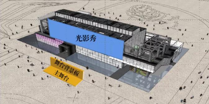 利用前后古今對(duì)比打造虛實(shí)相生動(dòng)靜結(jié)合的場(chǎng)景還原演繹及延展性空間觀感體驗(yàn),在影片場(chǎng)景與事件的表現(xiàn)上,利用后方是電廠投影幕,前方是現(xiàn)代實(shí)景舞臺(tái),讓觀感體驗(yàn)可以突破空間的限制,將事件與空間相結(jié)合,以虛實(shí)相生的情景進(jìn)行歷史還原再現(xiàn),增強(qiáng)互動(dòng)感,同時(shí)能夠激活沙井蠔的文化魅力與活力,通過(guò)情節(jié)將沙井蠔的文化特色無(wú)線(xiàn)延伸,在視覺(jué)空間上也具有更多的延展性。
