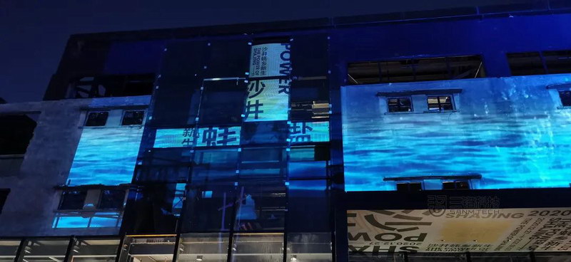 31000流明高清工程投影機(jī)將表演舞臺(tái)背后的墻面作為展示屏。45米X10米的超大尺寸展示,運(yùn)用不一樣的藝術(shù)動(dòng)態(tài)展示,產(chǎn)生了超乎想象的震撼效果,是充滿(mǎn)想象力的影像與建筑物搭配的完美結(jié)合。