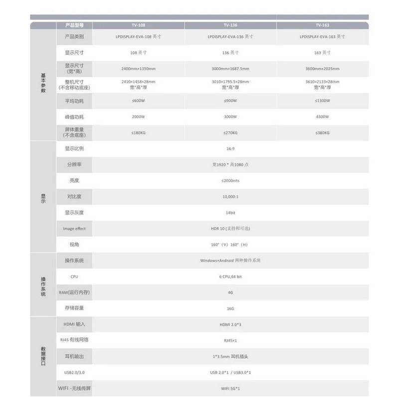 108“、136”、169“大尺寸,給你帶來沉浸式的視覺體驗,另外搭配堅固的腳架方便移動,多種數(shù)據(jù)輸入輸出接口更加方便辦公。