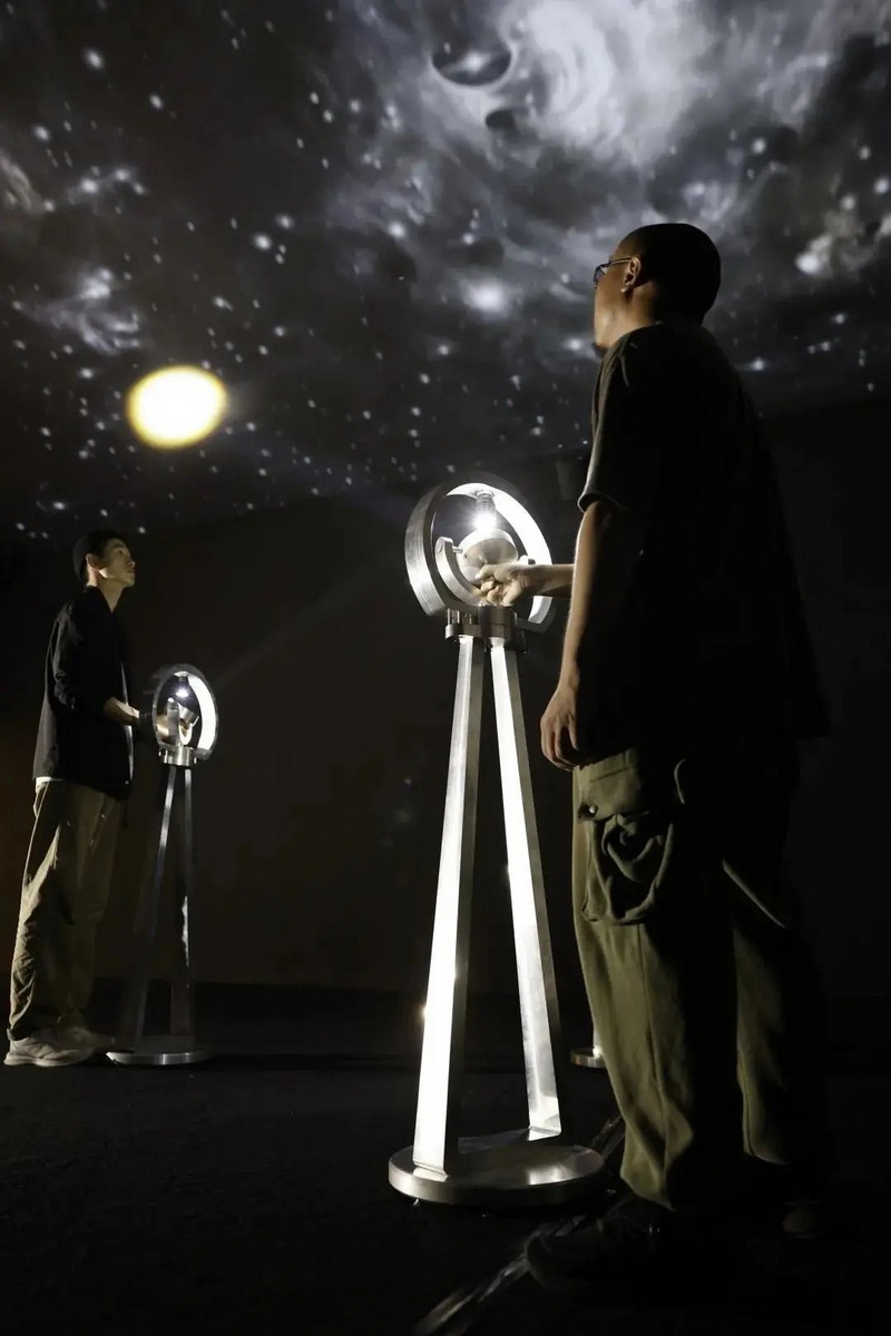 觀者通過操縱光控互動(dòng)形式,搜尋暗藏于空間(宇宙星云)中的聲音,光點(diǎn)所尋之處將呈現(xiàn)由著名戲劇演創(chuàng)人員錄制的經(jīng)典戲劇獨(dú)白。將時(shí)間與空間、經(jīng)典與當(dāng)下、公眾與演創(chuàng)人員置于同一維度:現(xiàn)實(shí)生活的戲劇時(shí)空,是謂剎那即永恒。