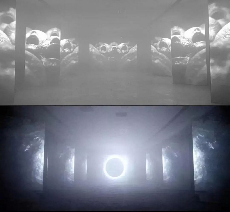 在對(duì)空間的探究中,圍繞“弦理論”對(duì)空間維度的預(yù)言,將我們引入高維的“超空間”遐想。升維的思考或許是反觀的最佳視角,所以我們選擇直面未知的維度。作品《未知·維度》是由20屆畢業(yè)生圍繞未知維度的探討所引發(fā)的十二個(gè)話題,從而生成十二件獨(dú)立綜合媒介空間藝術(shù)作品,并聯(lián)合浙江音樂學(xué)院畢業(yè)生協(xié)同創(chuàng)作完成。通過數(shù)字系統(tǒng)控制各部分作品在空間中交替隱現(xiàn),呈現(xiàn)不同話題間整體連貫的詩性敘事。作品嘗試突破劇場(chǎng)的三維視覺空間,以沉浸式通感體驗(yàn)呈現(xiàn)超空間的跨維度猜想。