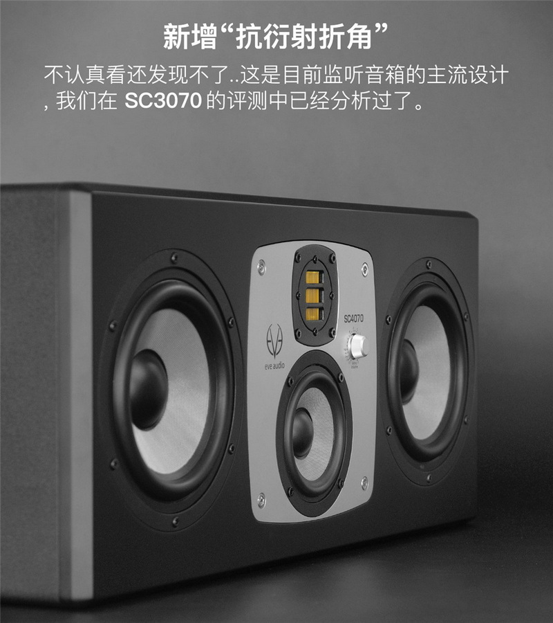 在錄音行業(yè),Main Monitor“主監(jiān)聽”通常要比 Mid-Field “中場監(jiān)聽” 有更大的聲壓和下潛,其實(shí)去年 EVE 推出的 SC3070 (評測) 就分類到主監(jiān)聽了,貌似 EVE 的“四字哥哥”都定位主監(jiān)聽。