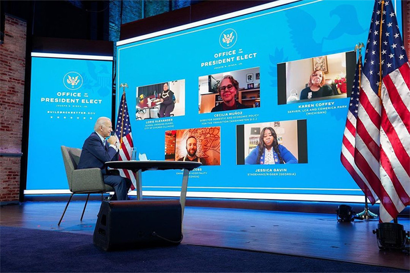 遵循于這種新舊結(jié)合的理念,在最終的舞臺呈現(xiàn)上可以看到,整個演播室被包圍在傳統(tǒng)建筑的紅色磚墻之中。演播室內(nèi)部,舞臺上安裝了三面大型小間距LED高清屏幕,以兩側(cè)小,中間大的形式分布,傳統(tǒng)與現(xiàn)代的結(jié)合兼顧了歷史美感與實用性。大選期間,拜登團(tuán)隊就在這個演播室進(jìn)行了一場又一場的新聞發(fā)布、政治會議、與選民互動……并最終取得了勝利。