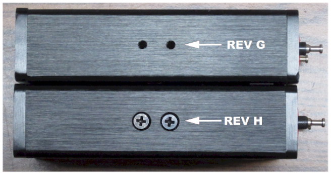 如果您的DATS V3硬件單元的底部沒有修訂字母”H“,請按照以下步驟確定您擁有的硬件版本。Rev G裝置的側(cè)面有空的螺絲孔,并且螺絲孔沒有沉孔。(如下圖所示)