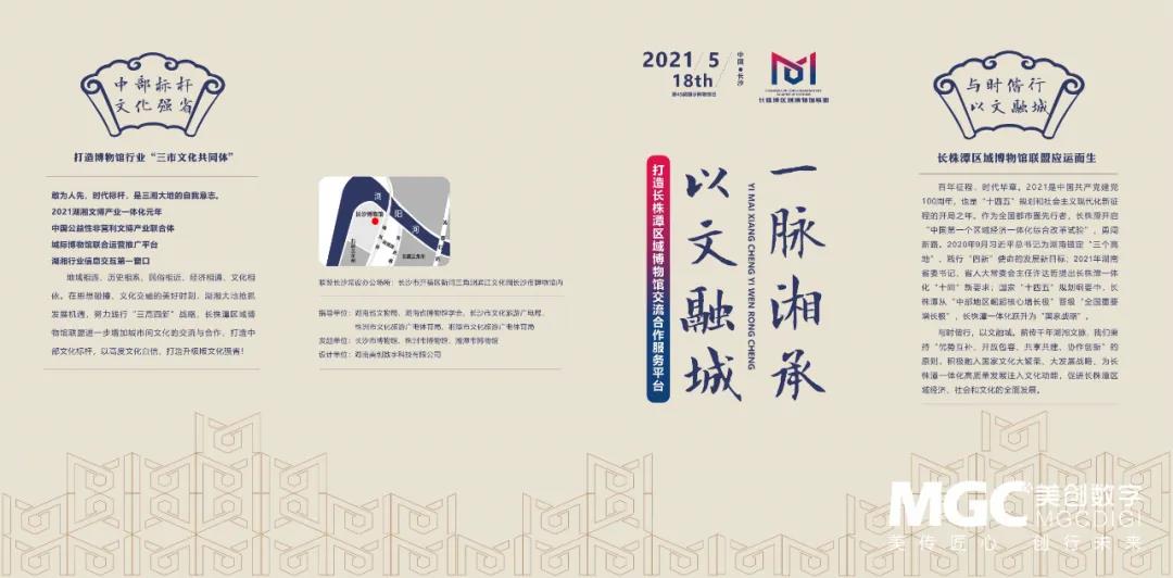 百年征程,時(shí)代華章。博物館作為社會(huì)精神文明和公共服務(wù)的“文化中樞”,直接影響和決定著一個(gè)城市的胸襟與發(fā)展的后勁。值此第45個(gè)國(guó)際博物館日到來(lái)之際,由長(zhǎng)株潭三市博物館等聯(lián)合發(fā)起,40家機(jī)構(gòu)自愿加入成立的公益性非營(yíng)利聯(lián)合體運(yùn)勢(shì)而生。MGC美創(chuàng)團(tuán)隊(duì),作為此次活動(dòng)的承辦單位助力長(zhǎng)株潭區(qū)域博物館聯(lián)盟成立大會(huì)在長(zhǎng)沙博物館順利舉辦。