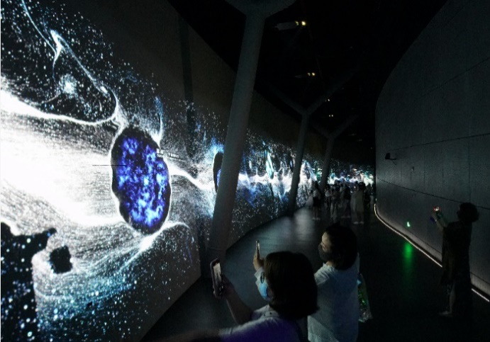 令人驚艷的設計也在天文館的內部得以體現,眾多亮眼的展區(qū)均配備先進的視聽科技,為觀眾帶來了具有高度互動性和沉浸感體驗。這些展區(qū)配備了 40 多臺科視Christie HS 系列和 GS 系列 1DLP 激光投影機,創(chuàng)造超凡投影,它們的亮度與圖像分辨率各有不同(從6,350 到 20,600 流明不等),并采用了科視Christie 潘多拉魔盒® V8 與科視Christie 窗口部件設計器 這套實時視頻播放及處理系統(tǒng)。