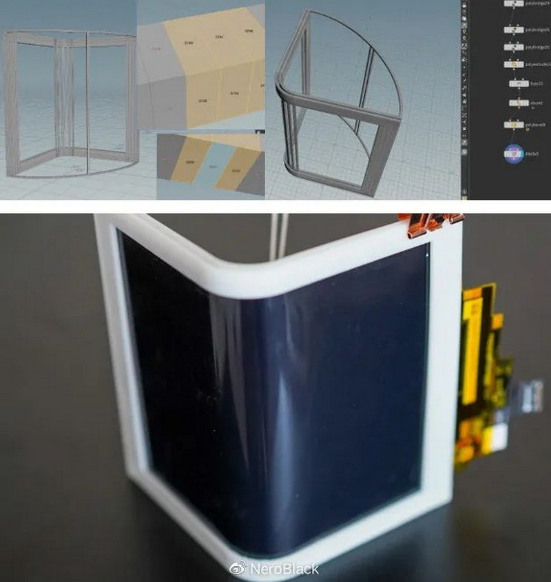 基于曲面渲染與上屏測(cè)試(使用的是柔宇1代手機(jī),這個(gè)環(huán)節(jié)是在3D打印支架還沒有完成的過程中進(jìn)行的,大概是第二版到第三版3D打印之間的那段時(shí)間,因?yàn)槭謾C(jī)算是有一定的支撐結(jié)構(gòu)能力)